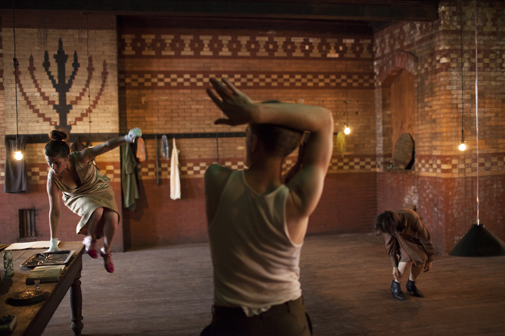 As a multidisciplinary dance company, Subcircle entwines choreography, installation, and film. Their 2010 production of Only Sleeping intricately choreographed live performers and filmed action. It raised questions about absence and togetherness, as the artists were challenged by collaborator Geoff Sobelle. They initiated rules of engagement, emailing prompts to each other, directing attention to a chair, the ceiling, a radiator—objects of a particular filmed space.