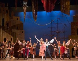 The work begins at sea, on the moon-lit pirate ship that sails its crew to the fateful meeting of Conrad and Medora.