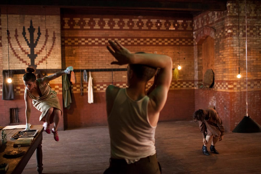 As a multidisciplinary dance company, Subcircle entwines choreography, installation, and film. Their 2010 production of Only Sleeping intricately choreographed live performers and filmed action. It raised questions about absence and togetherness, as the artists were challenged by collaborator Geoff Sobelle. They initiated rules of engagement, emailing prompts to each other, directing attention to a chair, the ceiling, a radiator—objects of a particular filmed space.