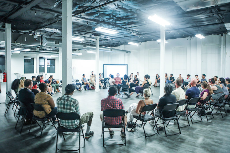 Those in the “fishbowl” offer nuanced and thoughtful perspectives, from discussing what their Asian American identities are rooted in—food, school, parents, the gaze of others—or more complex questions about what Asian Americans can offer to social justice and interracial healing on a personal and community-based level. Particularly resonant with the AAI’s founding ethos[2] are discussions on how the Asian American community could lend support and solidarity to the African American community and its struggles. Those in the fishbowl even openly discuss and question terms Park offers like “interracial reconstruction” and “people of color,” which I take to be a sign of healthy dialogue. As a half-white, half-Asian American myself, I find it refreshing to witness such an open, intergenerational conversation among so many who have similar experiences of racial identity. When Cat announces that time is up and the piece is over, I and many others scoot our chairs in further, hungry to keep the conversation going.