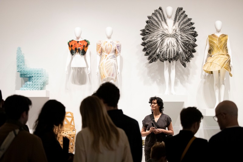 Nicole Bindler’s* words echo over the microphone strapped to her waist: her voice is our guide in this journey through the Designs for Different Futures exhibition at the PMA Friday Remix event.