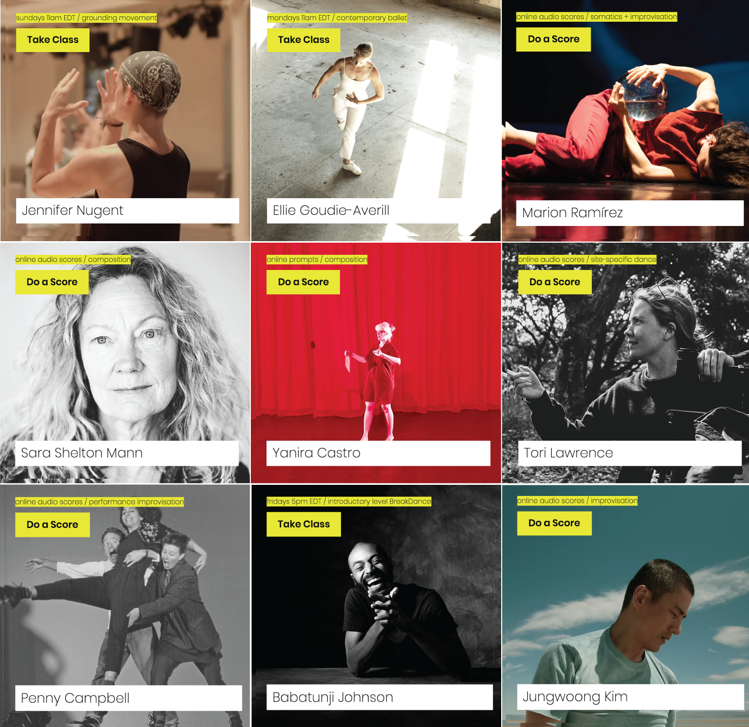 Movement Crossings and freeskewl have now joined forces, so dancers can go to one site and choose whether to join a live class, or interact with scores on their own. There are many scores to delve into on the sites, and a diverse lineup of freeskewl classes every week. So breathe, be present, and make your choice. There is so much dancing to be done. This dancing might keep you occupied for a very long time, staying curious and making new discoveries. What we learn during this time will carry us forward and make us ready to meet up in the studio again—more grounded within ourselves and therefore more open to each other.
