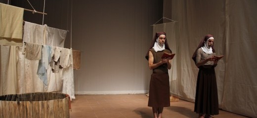 We sit in clumps of chairs, back-to-back and eye-to-eye, audience