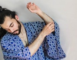 As he works his way towards the audience, his body rotating through space, the red kimono seems to be flying.